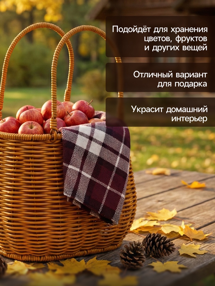 Область применения: Благодаря классическому дизайну она органично смотрится в гостиной, спальне или ванной комнате. Эта декоративная корзина станет приятным подарком — она сочетает практическую пользу с эстетической ценностью, внося в интерьер элементы гармонии плетения.