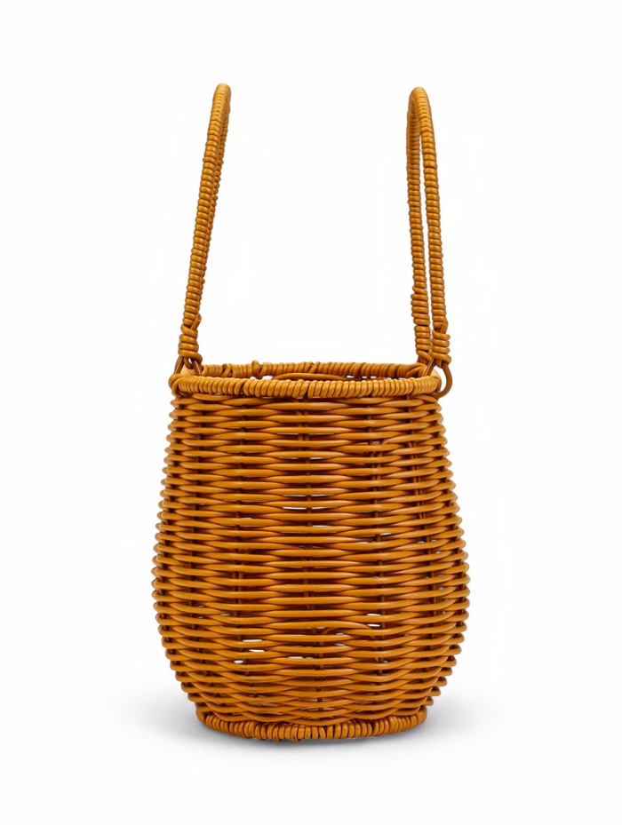 - Надёжные материалы: пластиковое плетение имитирует натуральную лозу, но не боится влаги. Ручка высотой 13 см прочно закреплена.