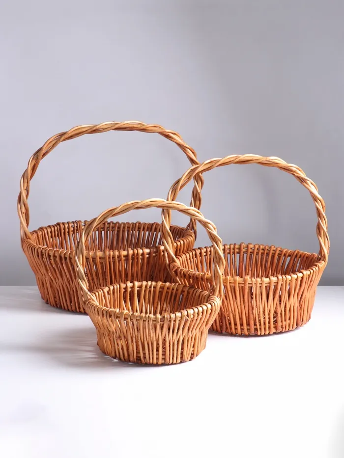 - Натуральный материал: Корзина сплетена вручную из гибких прутьев ивы. Это экологически чистый материал, известный своей упругостью и долговечностью. Каждое изделие уникально благодаря естественному рисунку плетения.