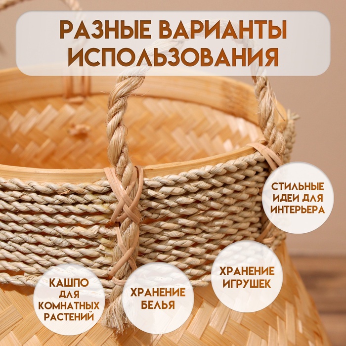 Плетёный аксессуар сделан из экологичного материала вручную, поэтому двух одинаковых экземпляров не найти.