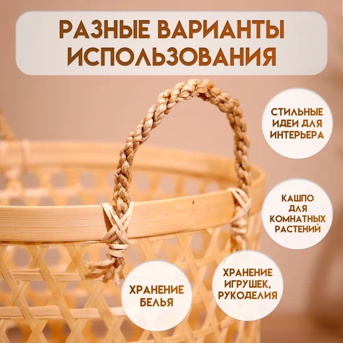 Плетёный аксессуар сделан из экологичного материала вручную, поэтому двух одинаковых экземпляров не найти.