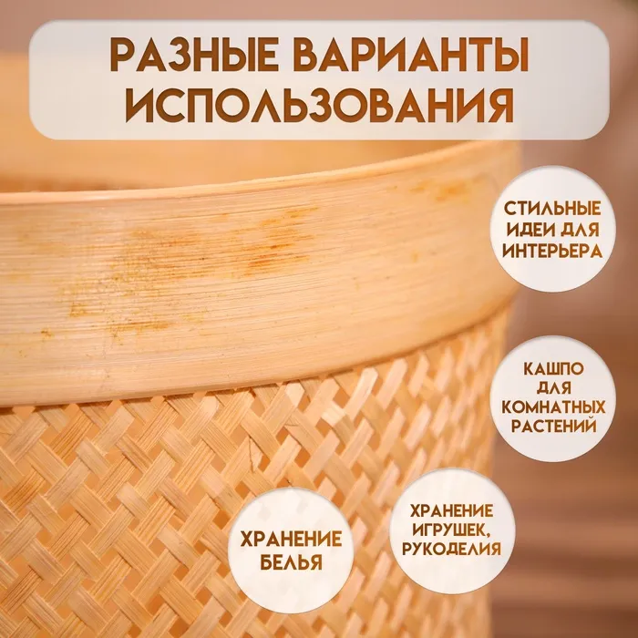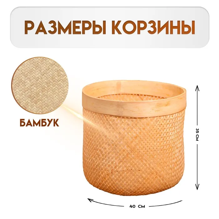 Корзина плетёная, из бамбука 40х40х35 см — Характеристики
