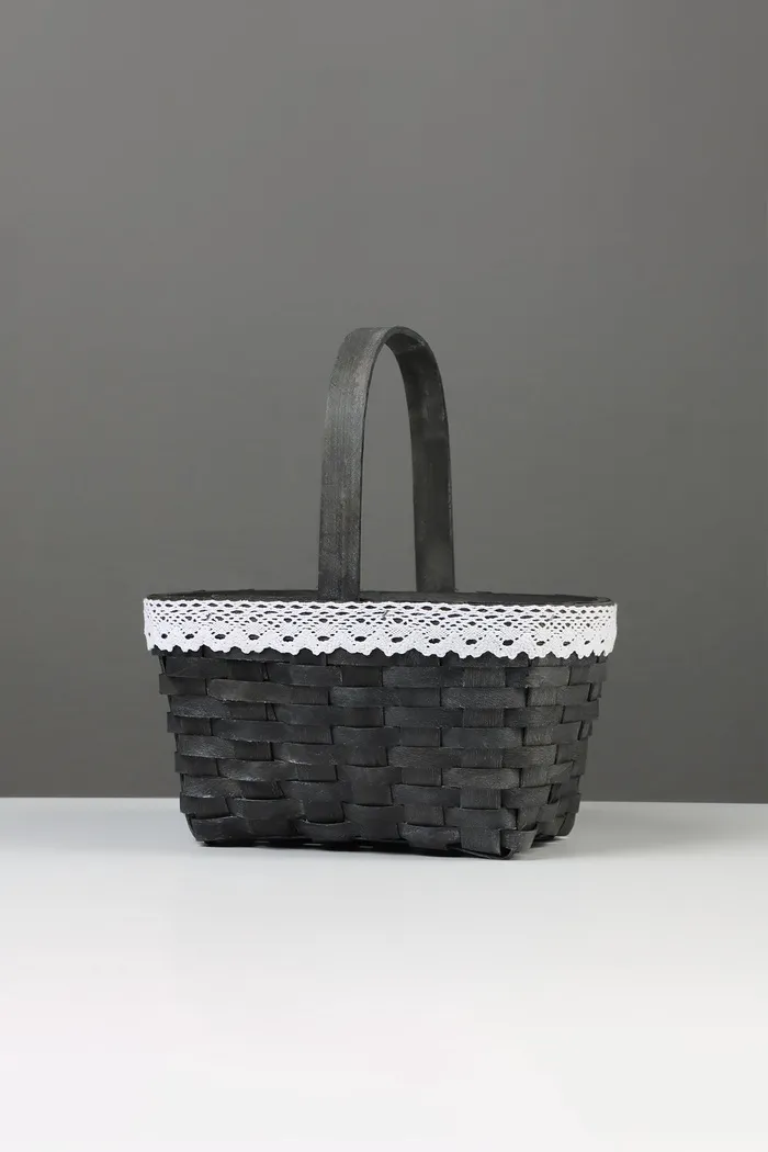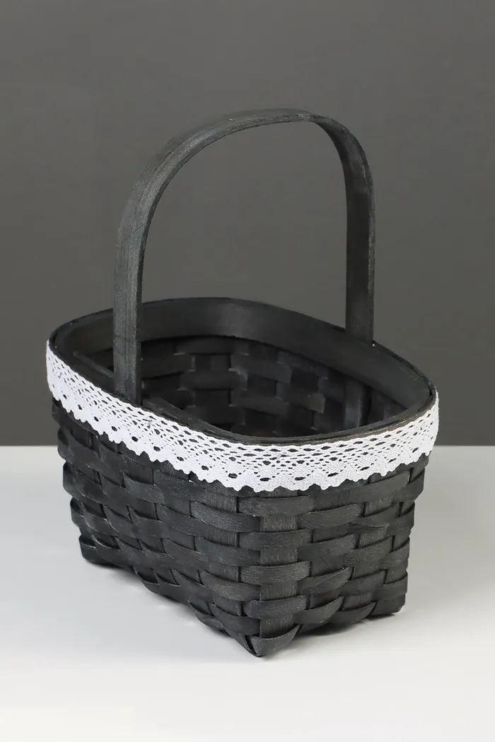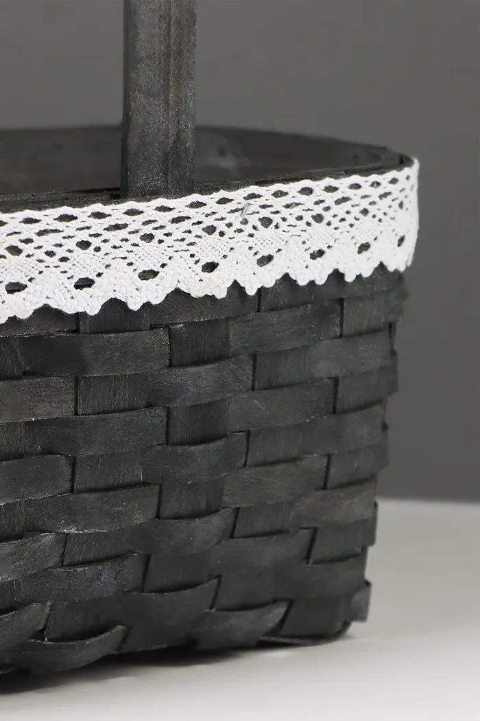 Корзина плетёная, с кружевом, 22×17×11 см, ручка h=16 см, ива, серая — Характеристики