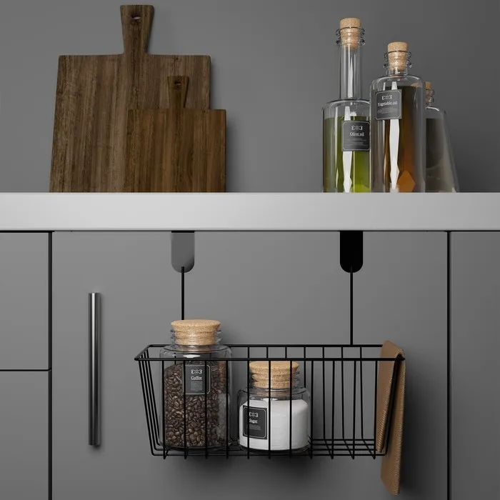 Сетчатая навесная корзинка от торговой марки Доляна предназначена для использования дополнительной возможности расширить имеющуюся полезную площадь на кухне.