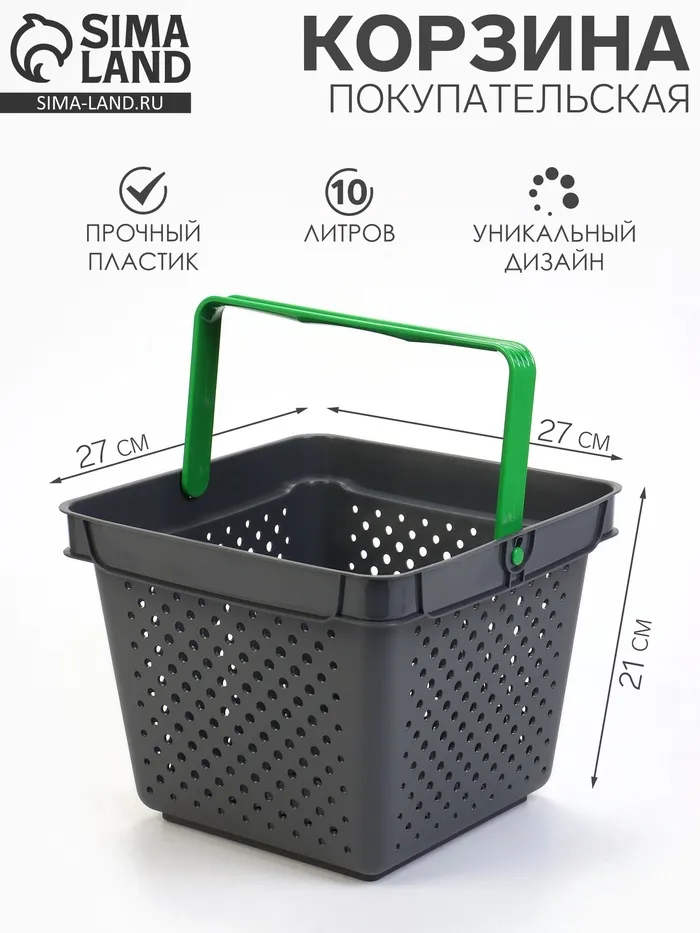 Корзина покупательская пластиковая 10 л, серая — Характеристики