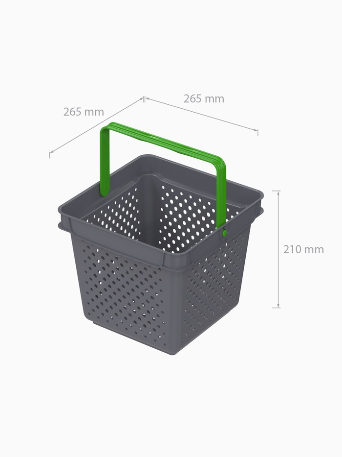 - Удобство использования: эргономичная форма и оптимальный размер позволяют комфортно удерживать корзину в руках даже при полной загрузке.