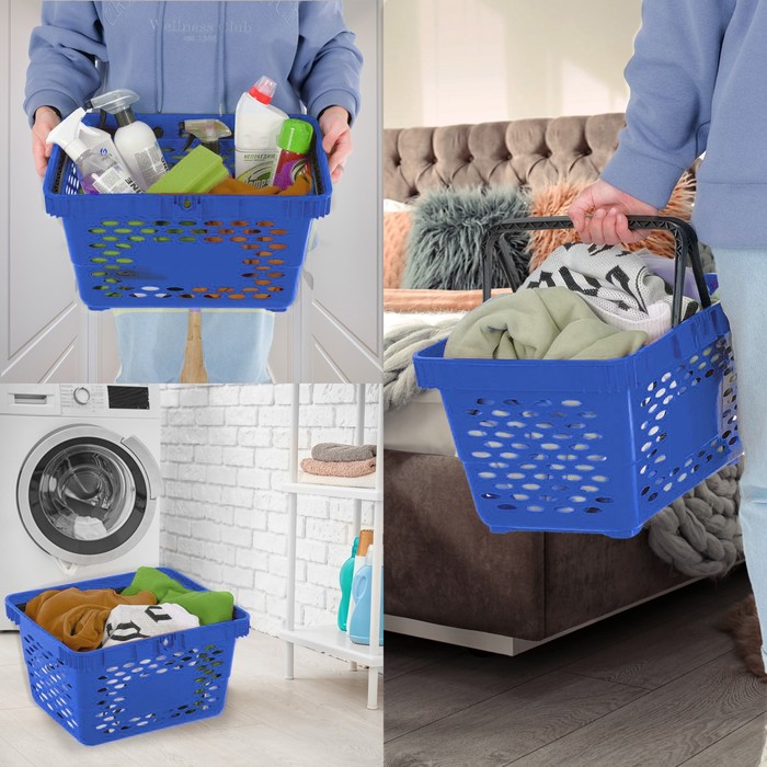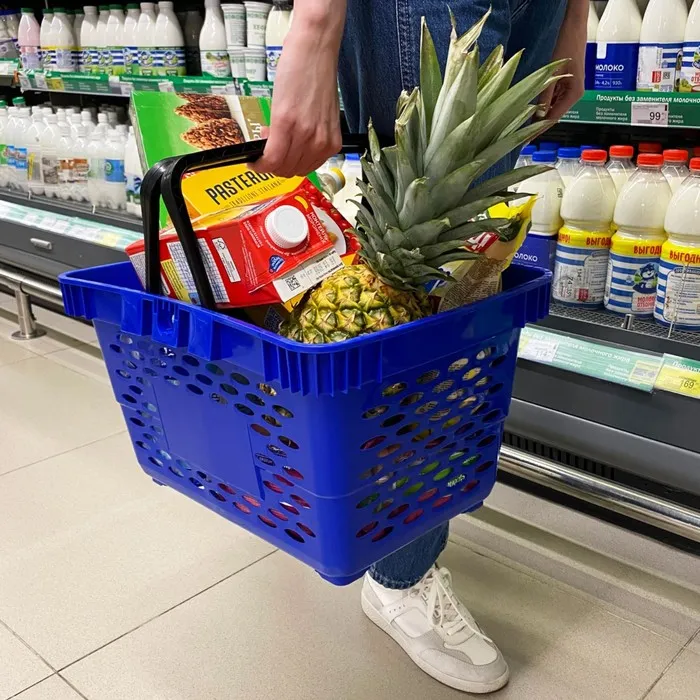 Корзина покупательская пластиковая, 20 л, 2 пластиковые ручки, цвет синий