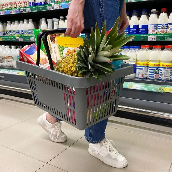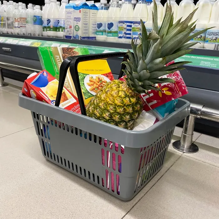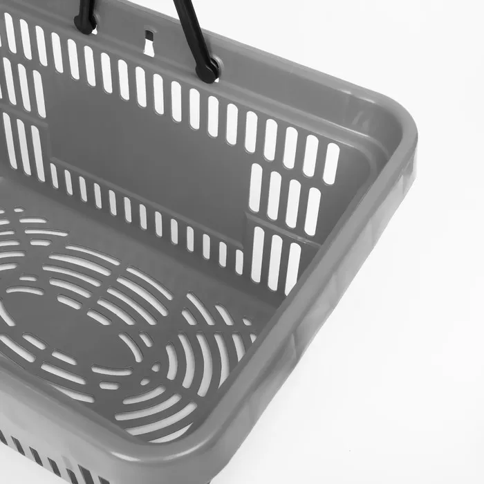 Корзина оснащена двумя ручками для переноса. Лёгкая, но в то же время прочная базовая модель изготовлена из ударопрочного пластика. Имеет мелкую перфорацию корпуса, чтобы небольшие товары не выпадали. Корзины легко штабелируются, благодаря чему их удобно хранить.