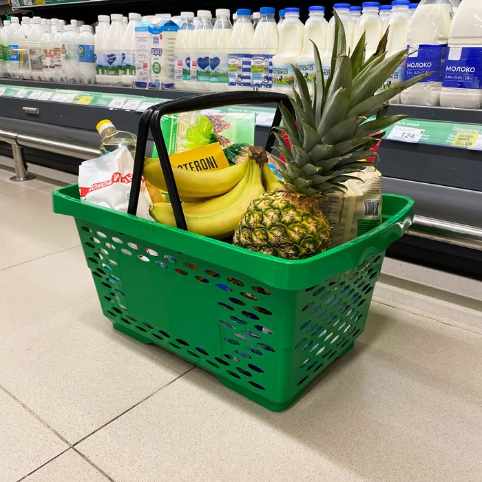 Корзина покупательская пластиковая 28 л, 51.5×34×26 см, зелёная — Характеристики
