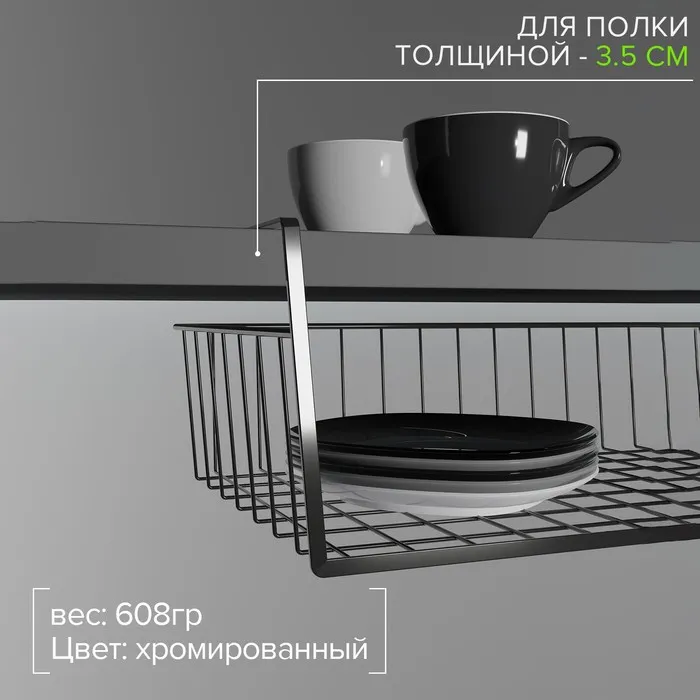 Корзина сетчатая навесная на полку Доляна, 40×25×14 см, хром — Характеристики