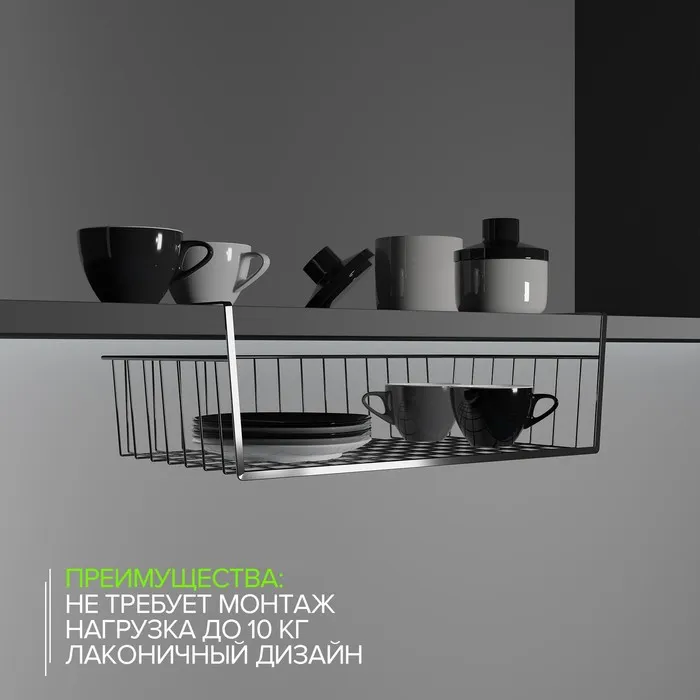 Сетчатая навесная корзинка от торговой марки Доляна предназначена для использования дополнительной возможности расширить имеющуюся полезную площадь на кухне.