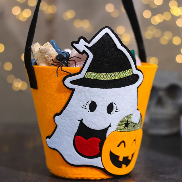 Корзинка в виде тыквы с призраком не только служит декоративным элементом, но и создаёт атмосферу настоящего праздника. Её можно разместить на праздничном столе, использовать для квестов или как контейнер для угощений.