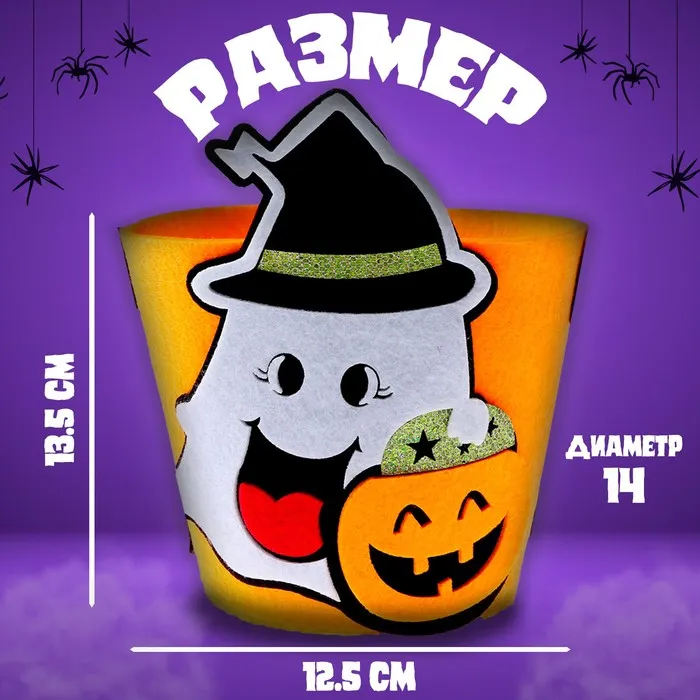 Корзинка декоративная « Призрак и тыква», 12,5 × 12,5 × 25 см — Характеристики