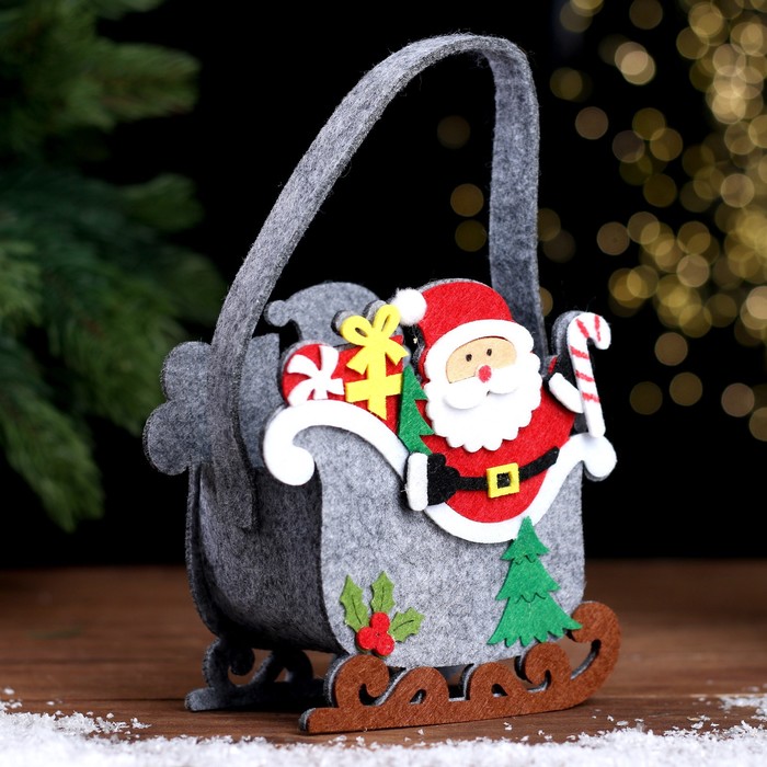 Корзинка для декора «Дед Мороз и сани», 13 × 7 × 19 см