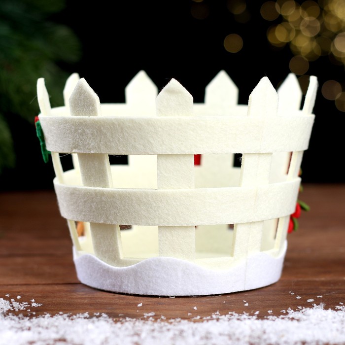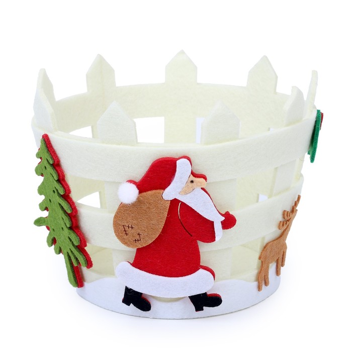Декоративная корзинка — это универсальный атрибут для новогоднего праздника. Корзина сделана из фетра.