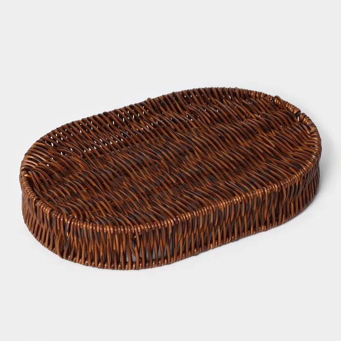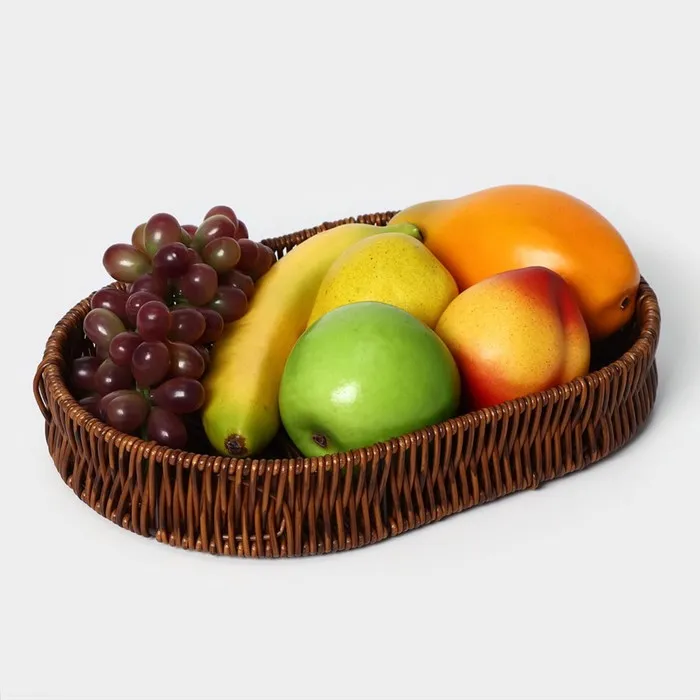 Корзинка для фруктов и хлеба Доляна «Огайо», 31×21×5 см, пластик, плетёная, овальная, коричневая — Характеристики