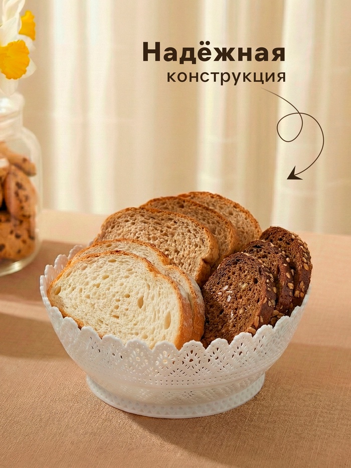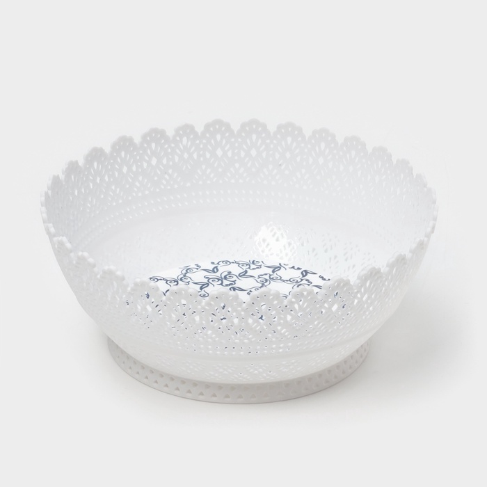 Корзинка для фруктов и хлеба «Зефир. Принт», пластик, d=20 см, белая — Характеристики