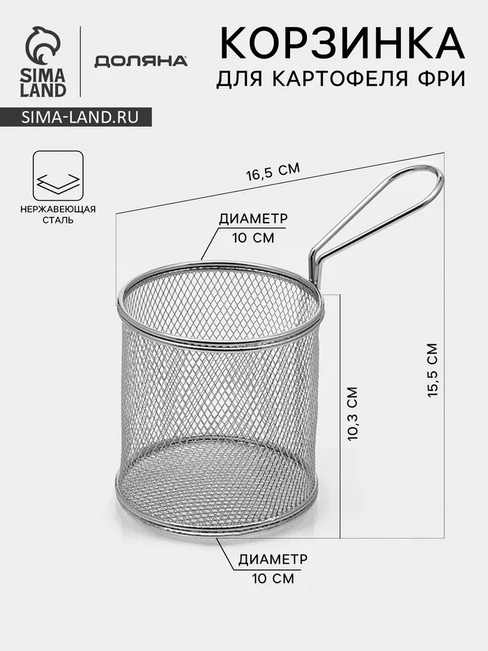 Корзинка для картофеля фри Доляна «Честер», d=10 см, нержавеющая сталь — Характеристики