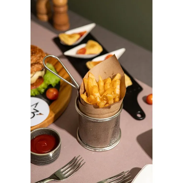 Металлическая корзинка для картофеля фри пригодится дома и в заведении быстрого питания.