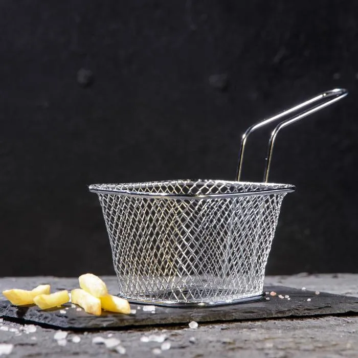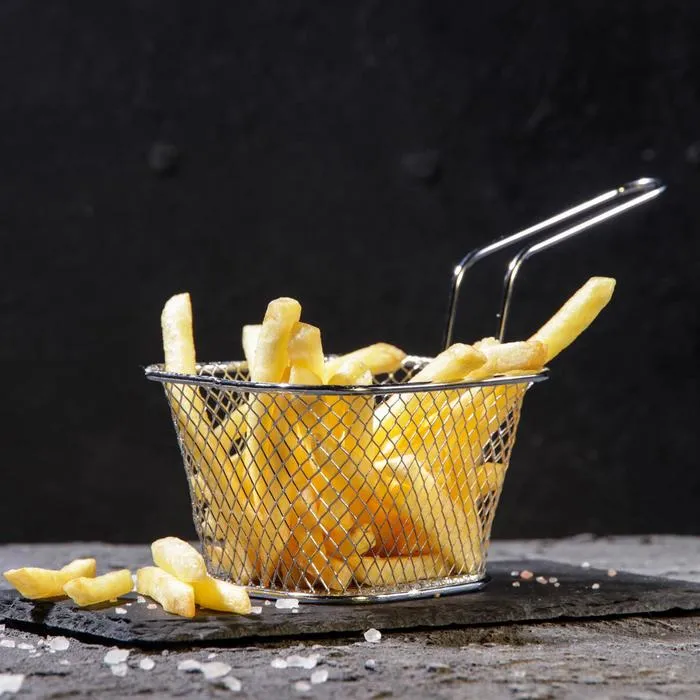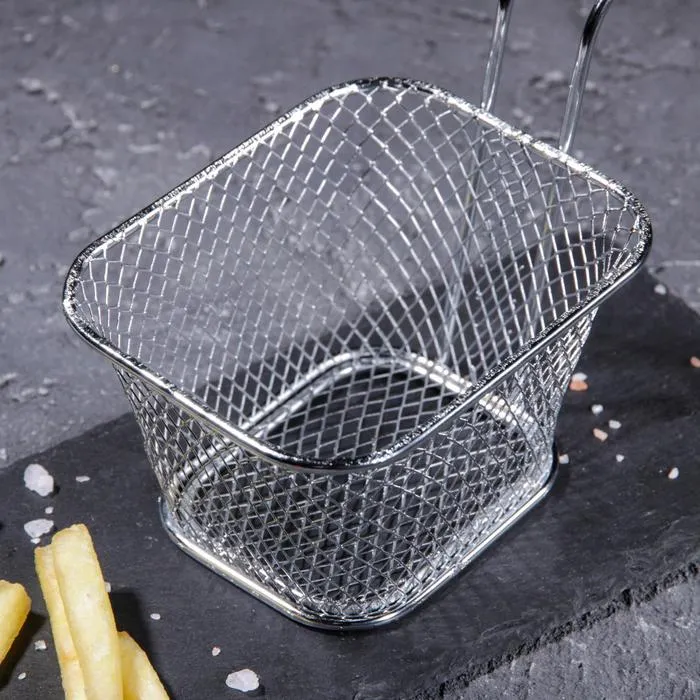 Металлическая корзинка — необходимый аксессуар для дома и заведений общественного питания. С удобным приспособлением лакомиться вкусной картошкой фри или куриными крылышками в панировке станет ещё приятнее.