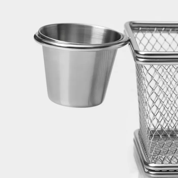 Корзинка для картофеля фри Доляна «Лонгфилд», 10×8×7.5 см, с соусником d=5 см, серебристая — Характеристики