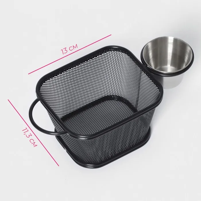 Корзинка для картофеля фри Доляна «Ночь», 13×11.3×8.3 см, с соусником d=5 см, чёрная — Характеристики