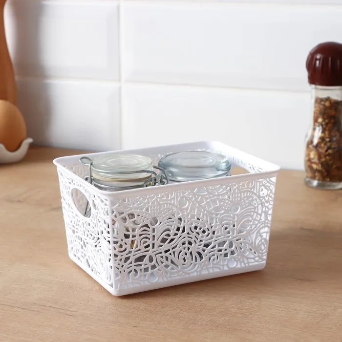 Корзинка для хранения «Кружевные цветы», пластик, 14×10×8 см, МИКС — Характеристики