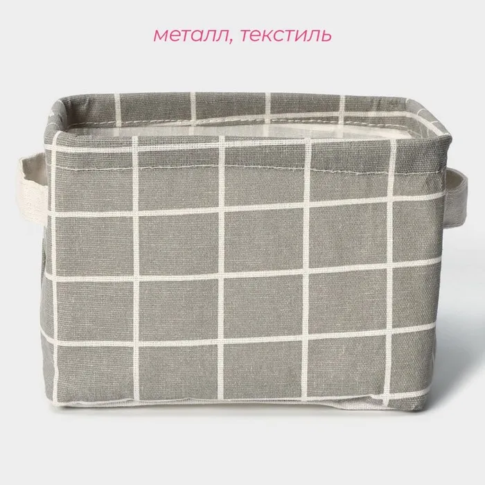 Корзинка для мелочей Доляна «Клеточка», с ручками, 20×17×13 см, серая — Характеристики