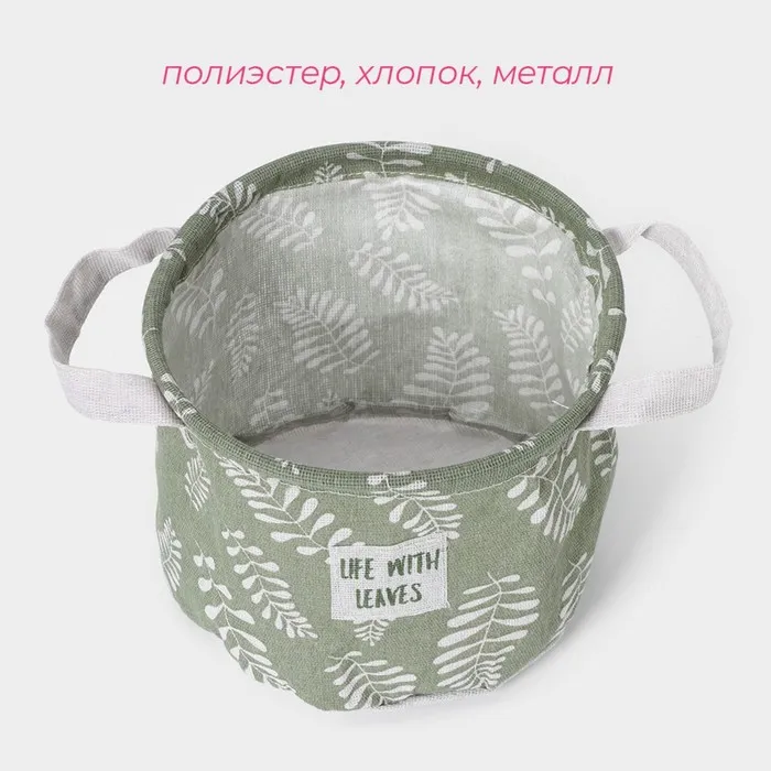 Корзинка для мелочей с ручками Доляна Leaves, 20×20×15 см, круглая, зелёная — Характеристики