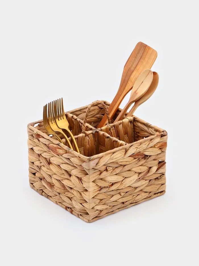 - У корзинки четыре отделения, которые помогут организовать подачу приборов к столу, или позволят удобно хранить кухонную утварь.