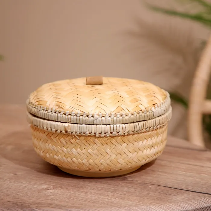 Корзинка плетёная с крышкой, 23×23×15 см, бамбук