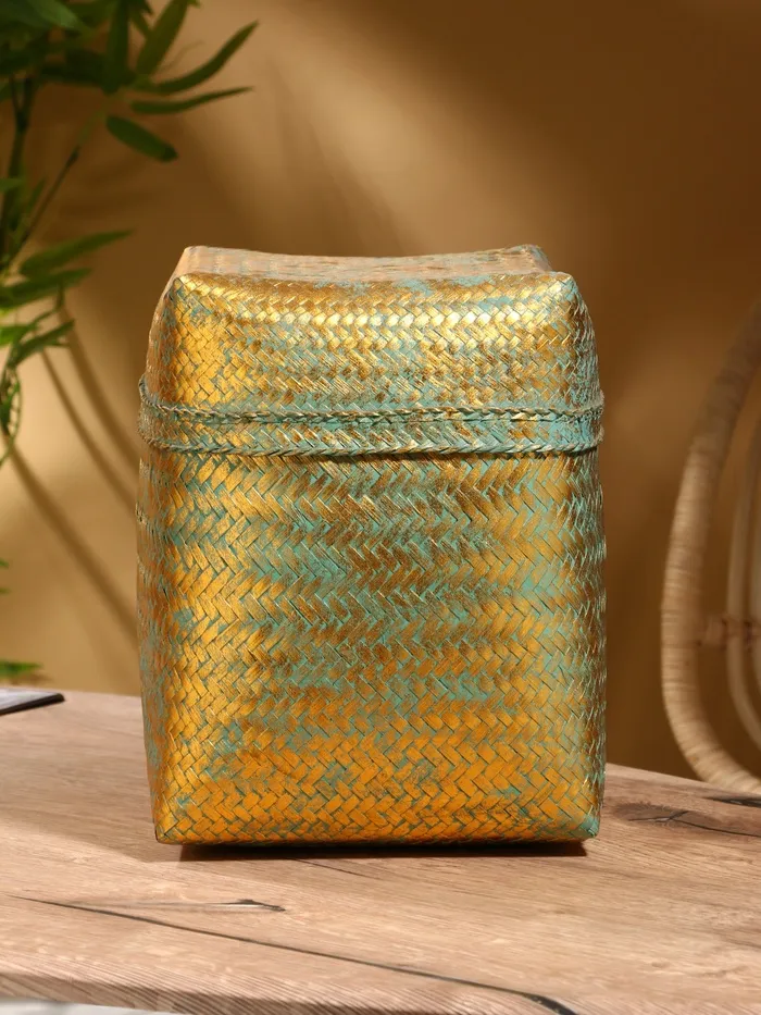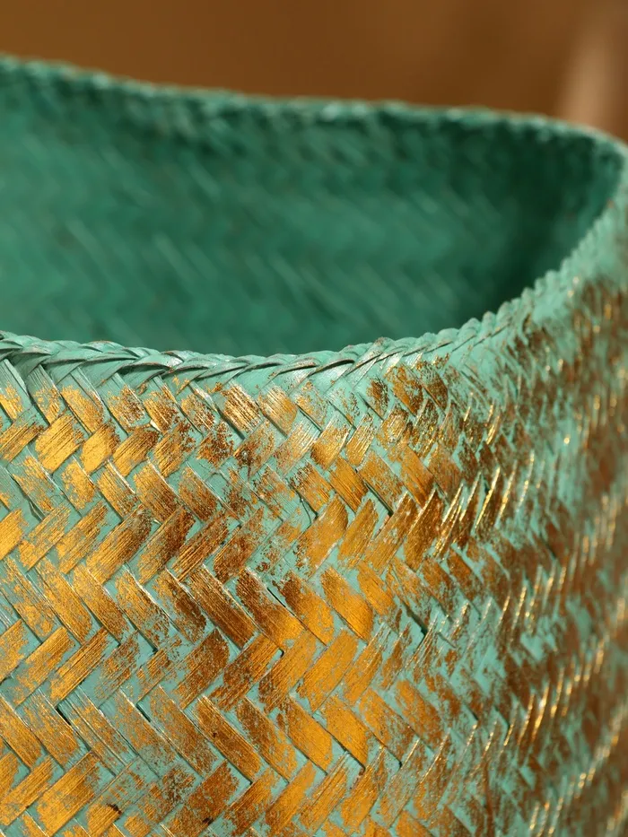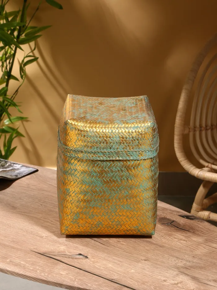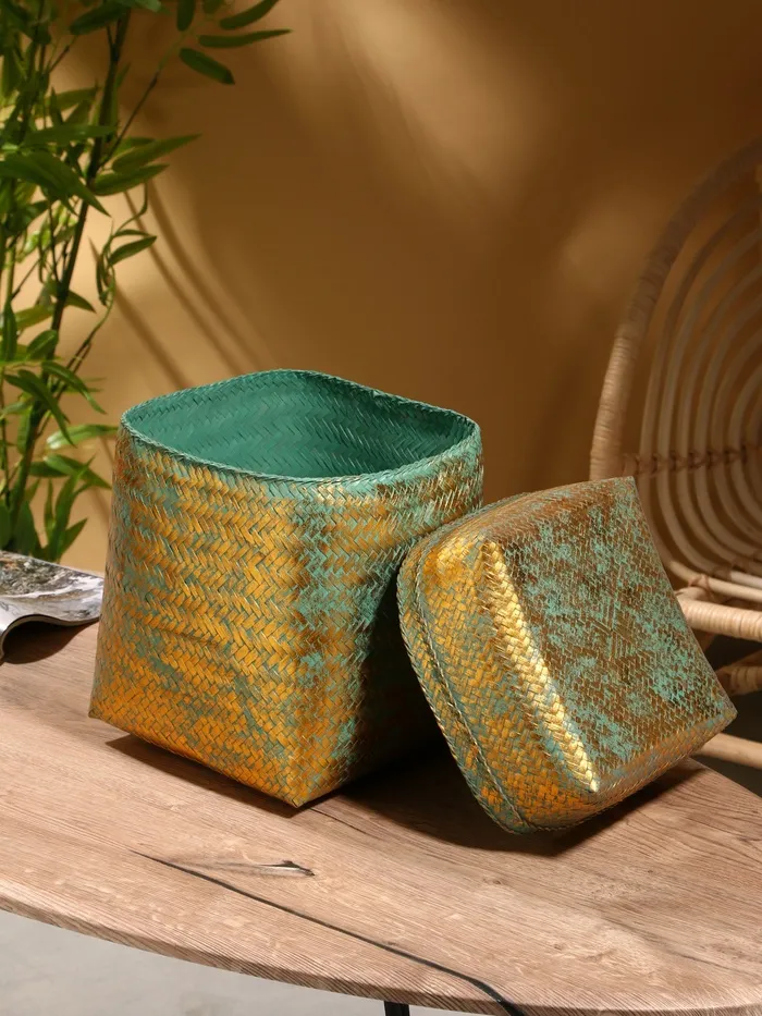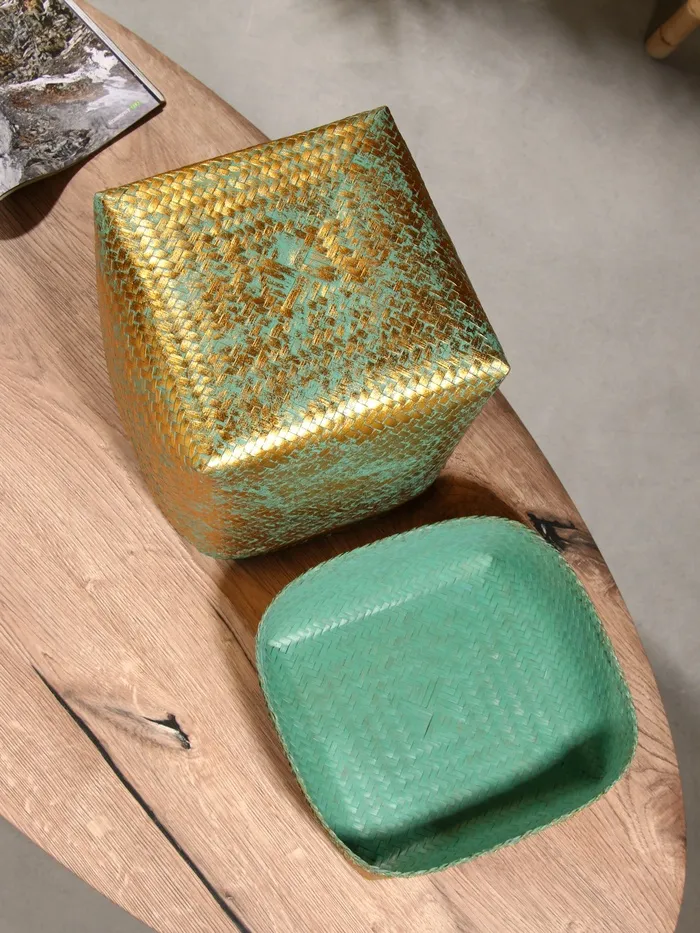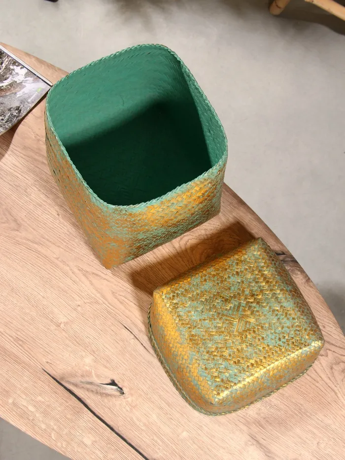 Корзина плетеная, бамбук, 21х21х10/24 см, зеленая
