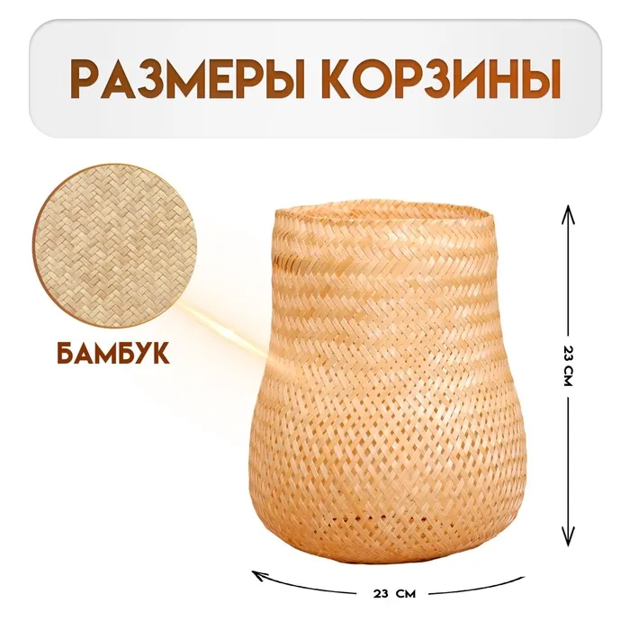 Корзинка плетёная, из бамбука 23х23х23 см — Характеристики