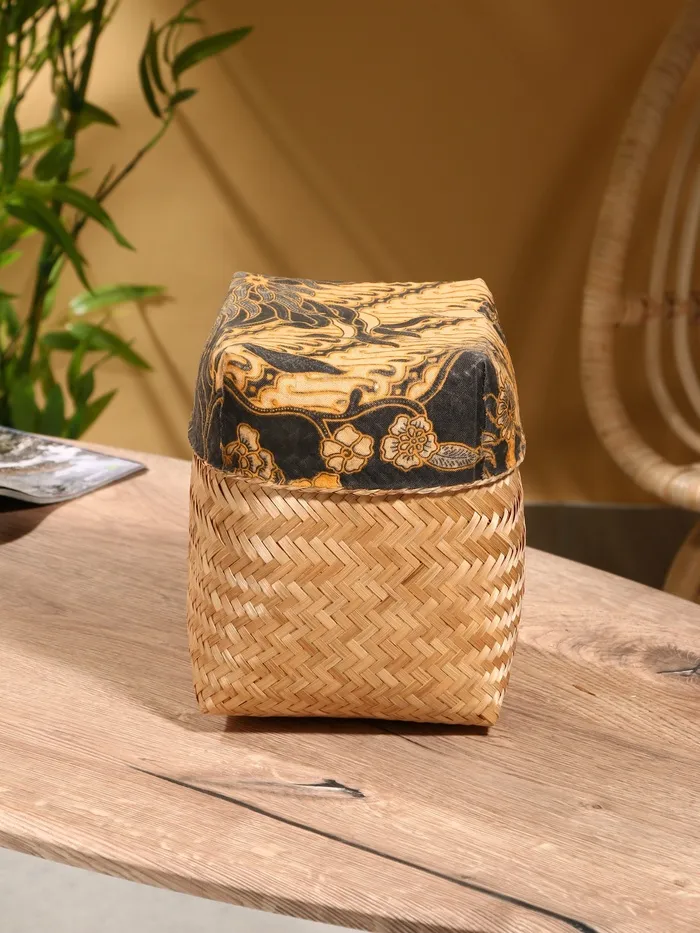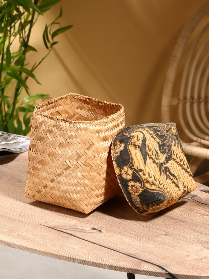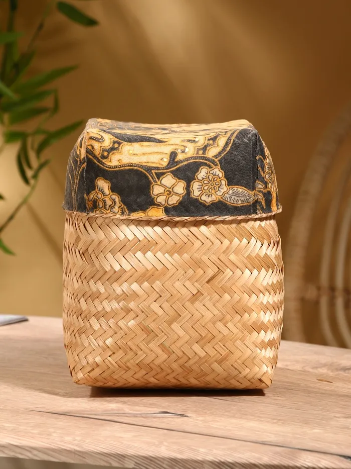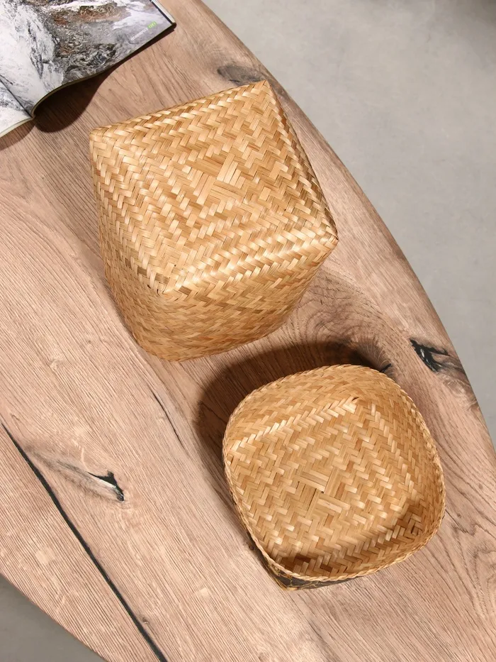 Корзина плетеная, бамбук, 21х21х10/24 см, зеленая