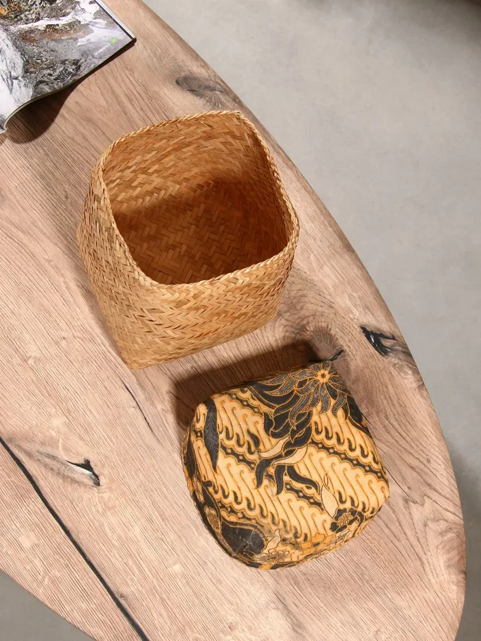 Корзина плетеная, бамбук, 21х21х10/24 см, красная