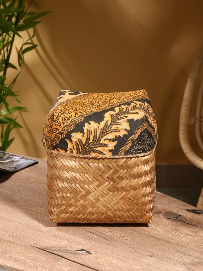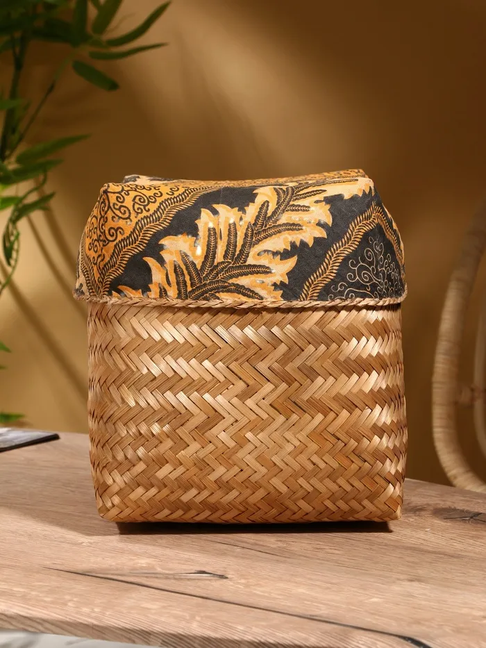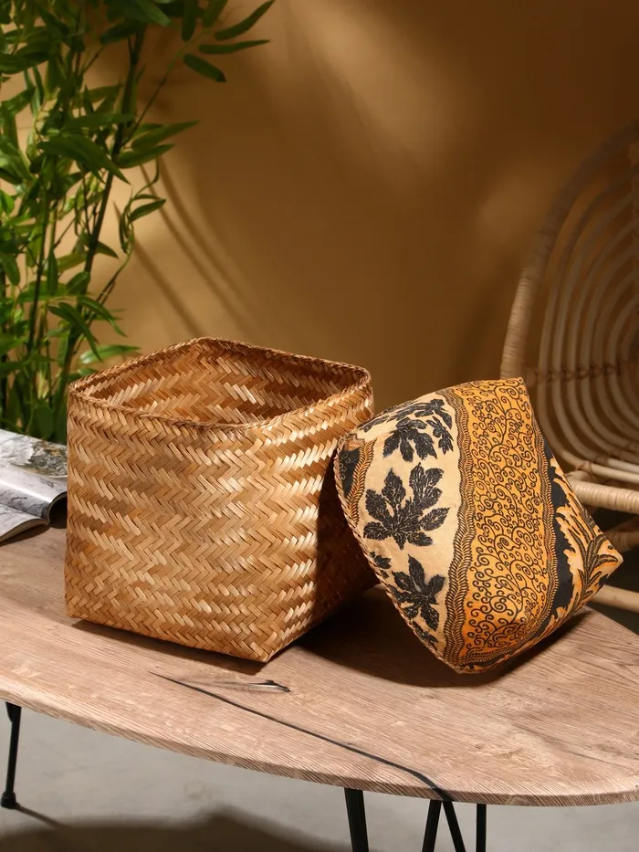 Корзина плетеная, бамбук, 21х21х10/24 см, зеленая