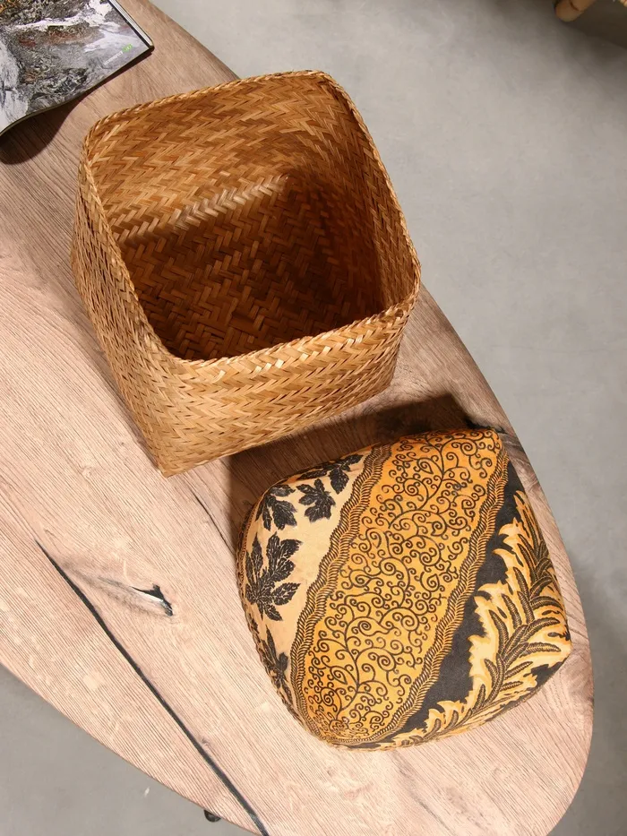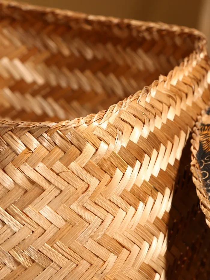 Корзина плетёная, бамбук, розовая, низкая
