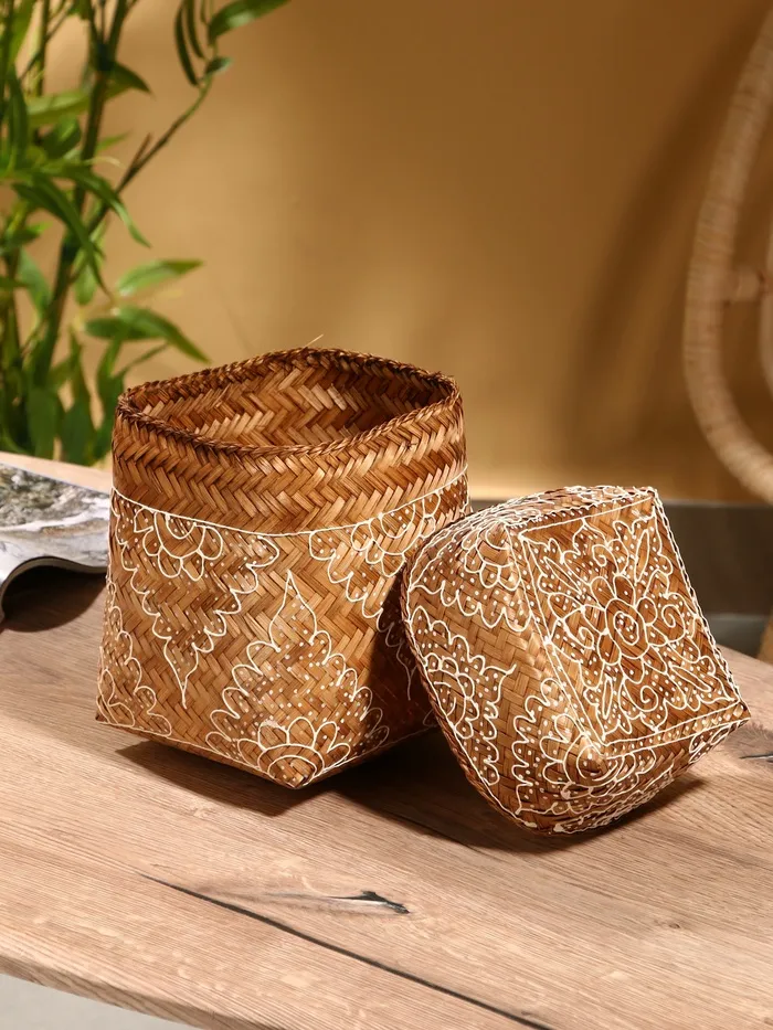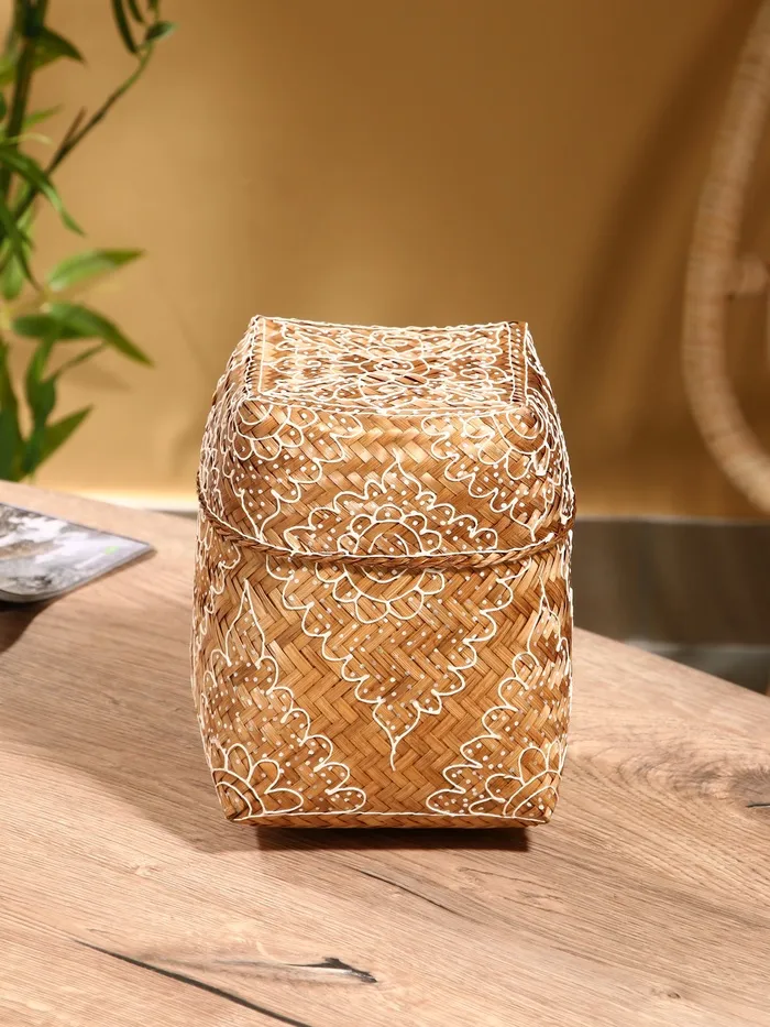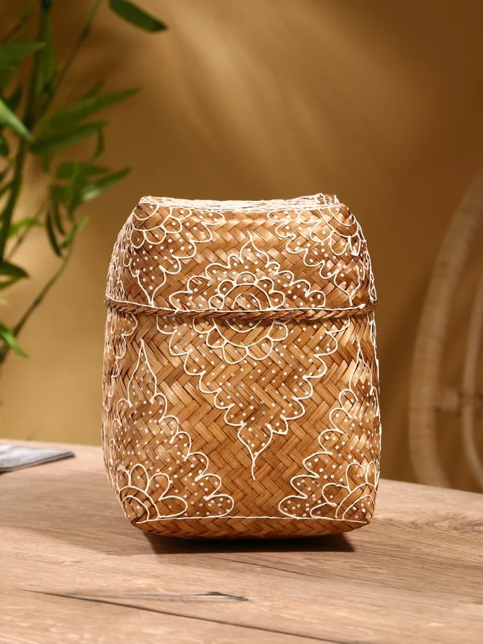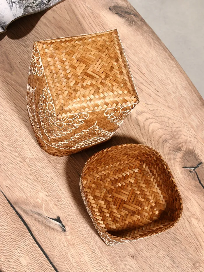 Корзина плетеная, бамбук, 21х21х10/24 см, красная