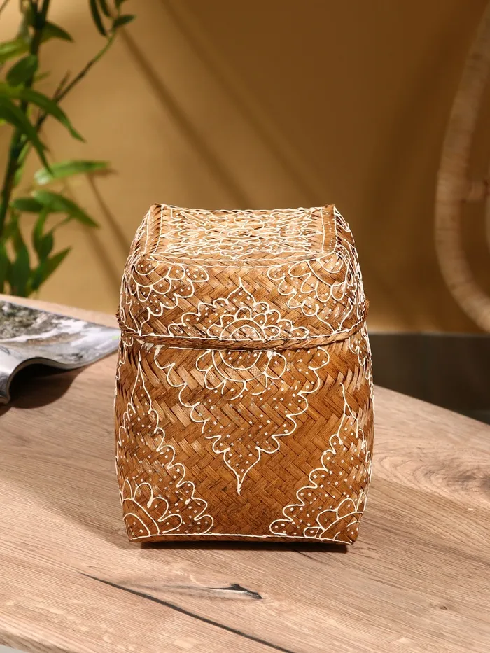 Корзина плетеная, бамбук, 21х21х10/24 см, зеленая