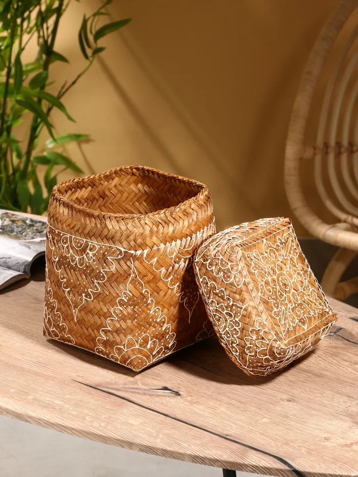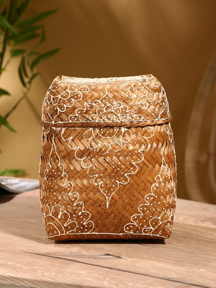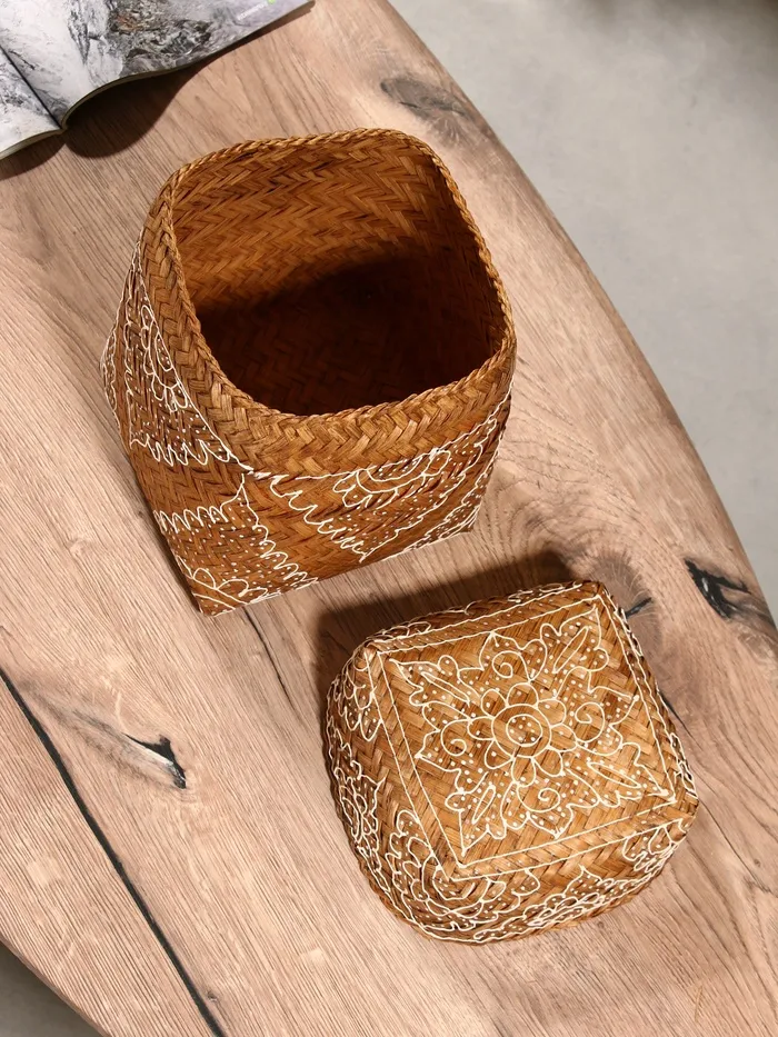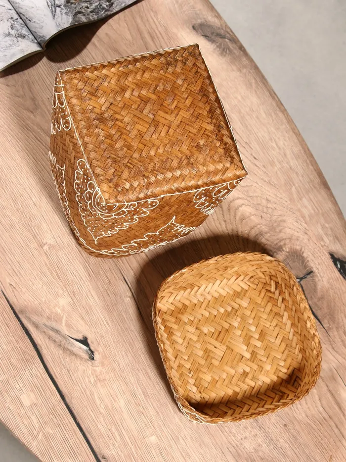 Корзина плетеная, бамбук, 21х21х10/24 см, красная