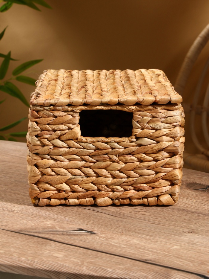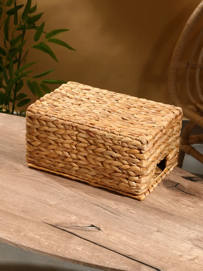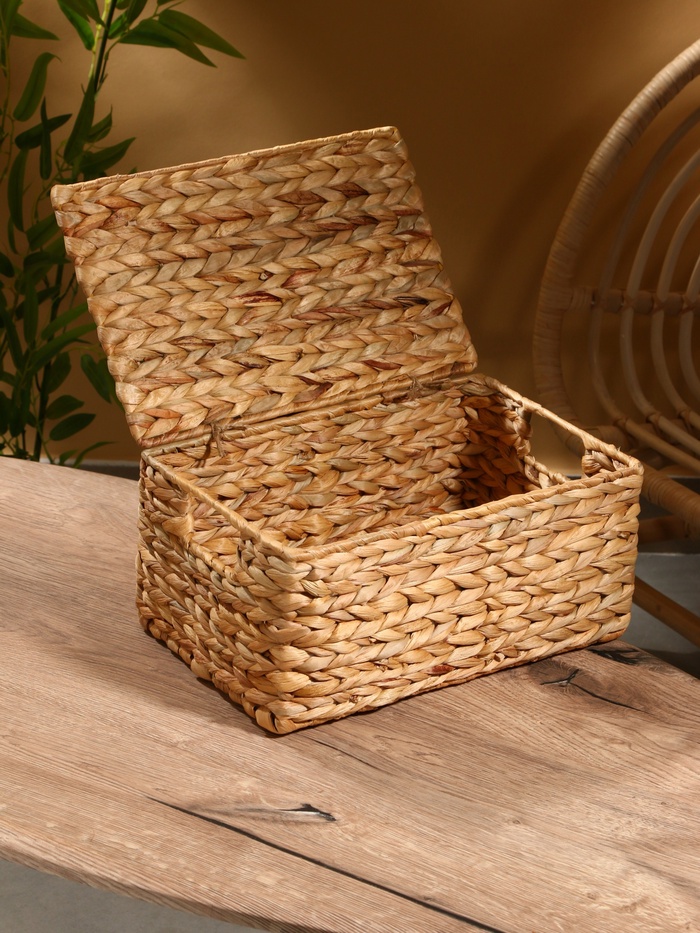 Корзинка прямоугольная с крышкой, 33×22×14 см, водный гиацинт
