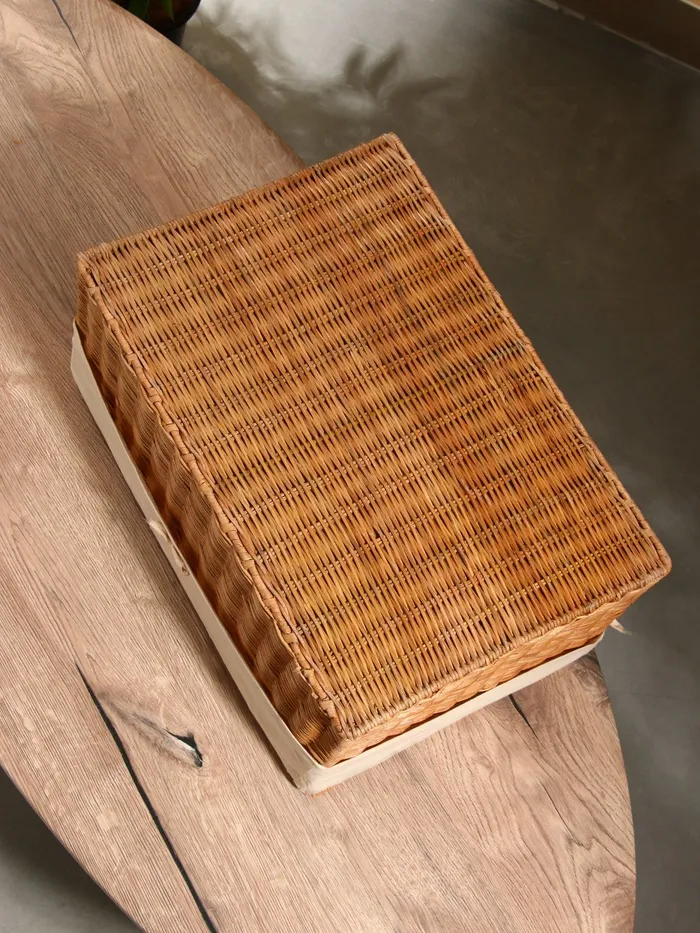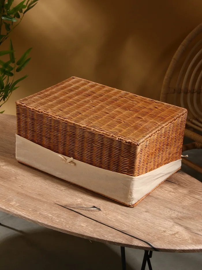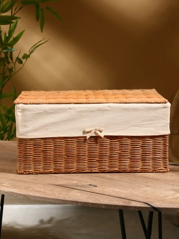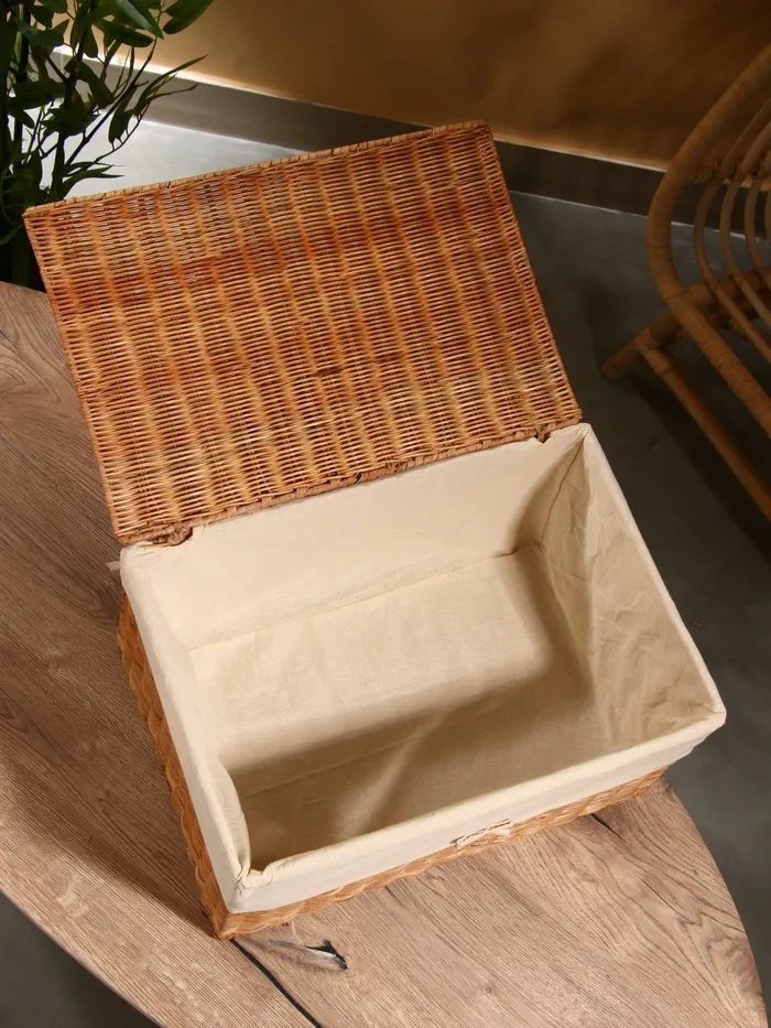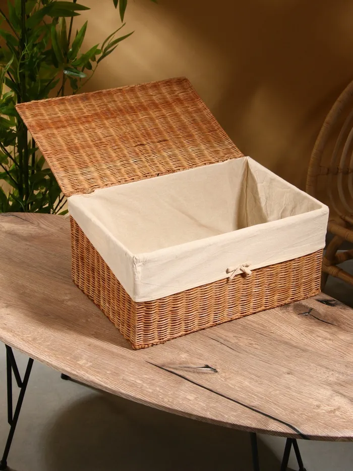 Корзинка прямоугольная с крышкой и тканевым подкладом, 44×30×20 см, ротанг