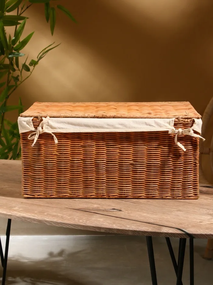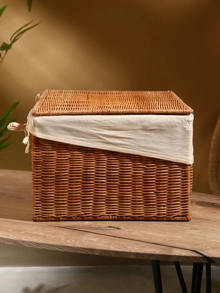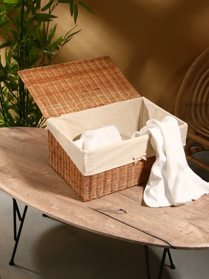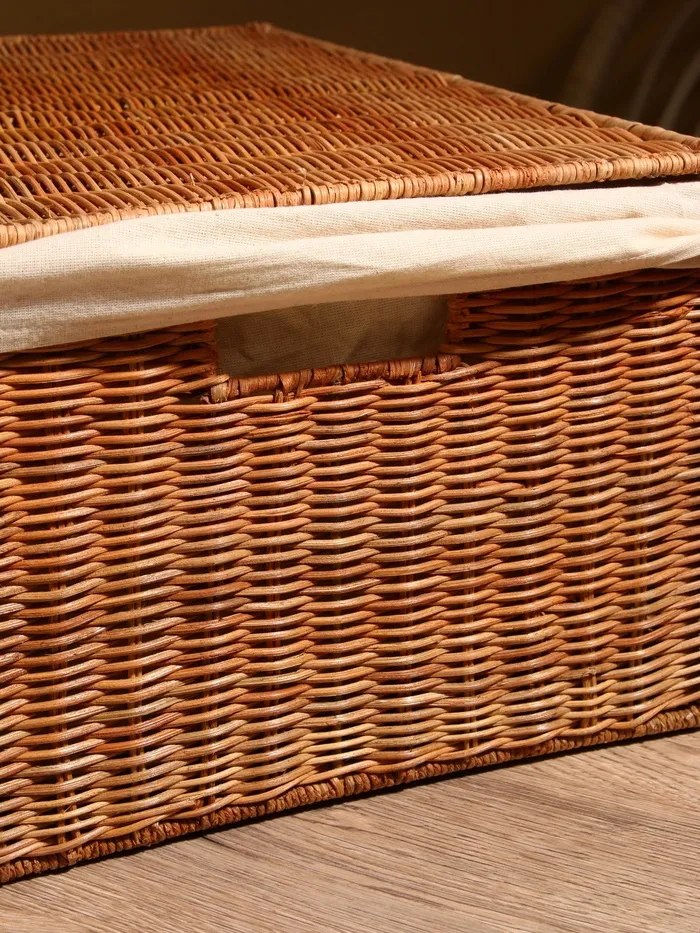 Корзинка прямоугольная с крышкой и тканевым подкладом, 44×30×20 см, ротанг — Характеристики