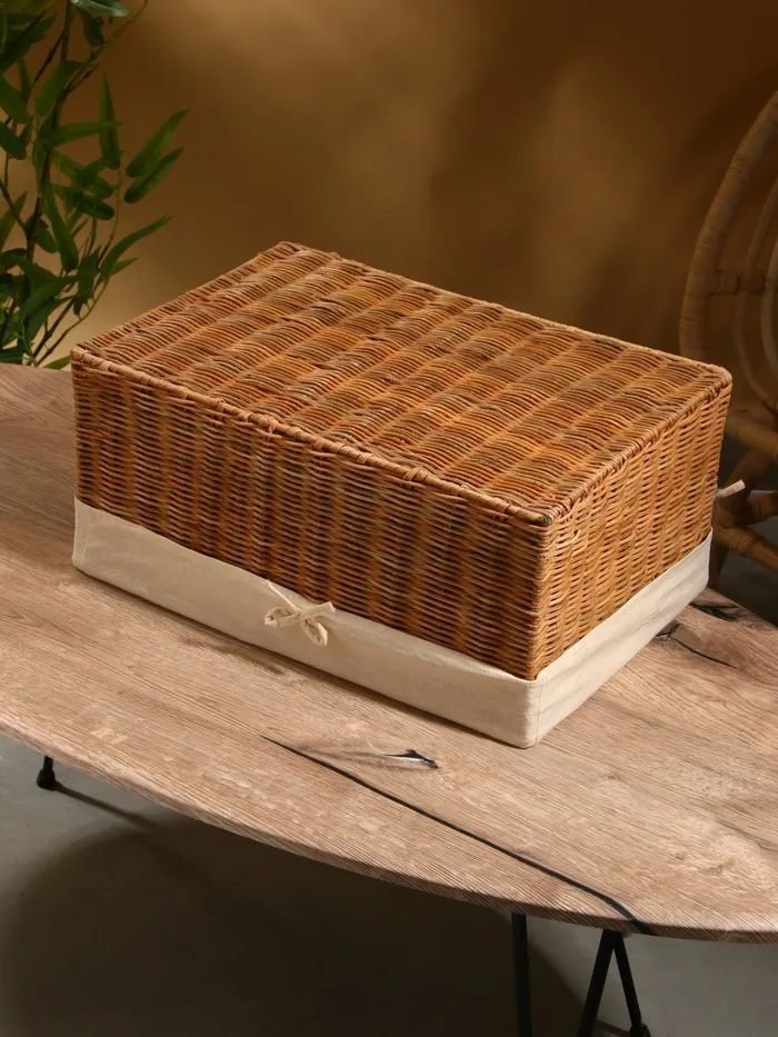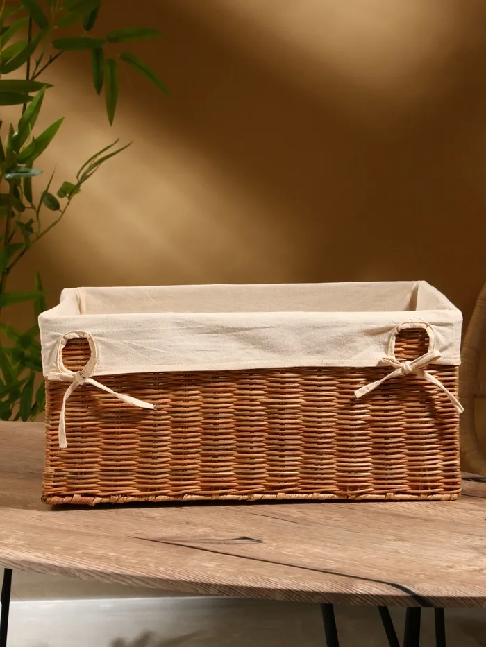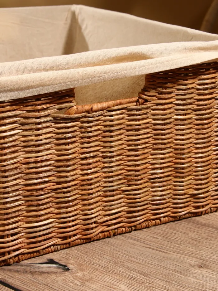 Корзинка прямоугольная с тканевым подкладом, 44×30×20 см, ротанг