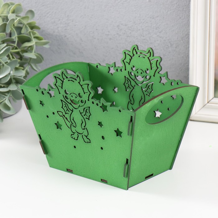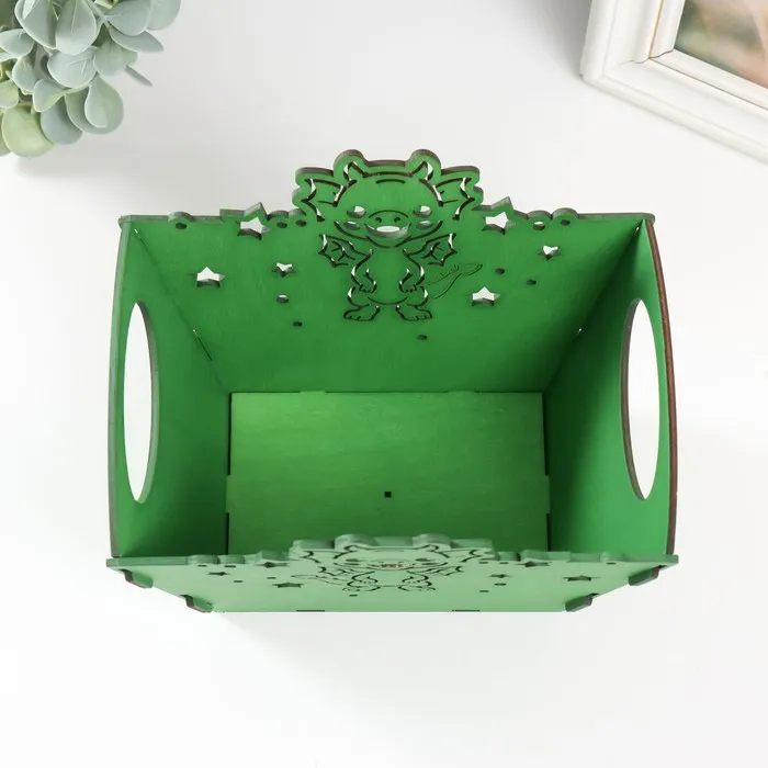 Корзинка-шкатулка для подарков «Дракоша», зелёный, 18×12×14.5 см, (набор 5 деталей) — Характеристики