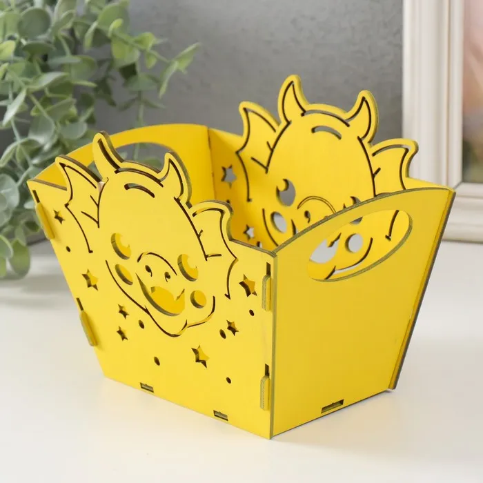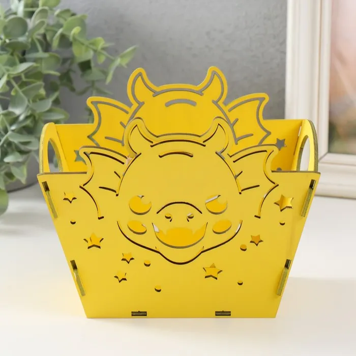 Корзинка-шкатулка "Мордочка дракона" жёлтый 18х12х14,5 см (набор 5 деталей) — Характеристики