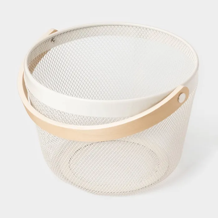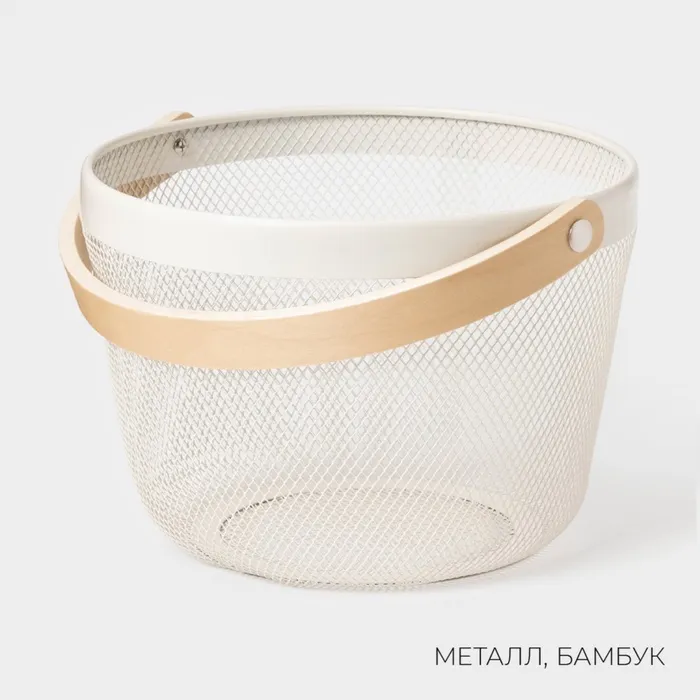 Корзинка выполнена из высококачественного металла, что обеспечивает её прочность и долговечность. Белый цвет гармонично вписывается в любой уголок вашего дома — будь то ванная, кухня или спальня. Это отличный вариант для хранения мелочей, которые постоянно теряются и создают беспорядок.