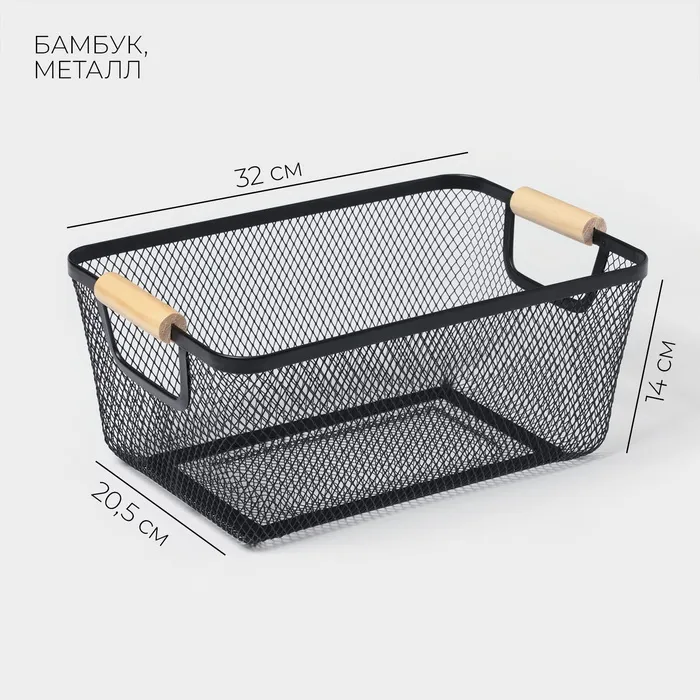 Корзинка универсальная LaDо́m «Миди», прямоугольная, 32×20.5×14 см, чёрная — Характеристики