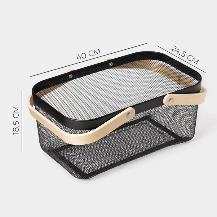 Корзинка универсальная LaDо́m, прямоугольная, 40×24.5×18.5 см, чёрная — Характеристики