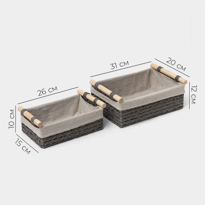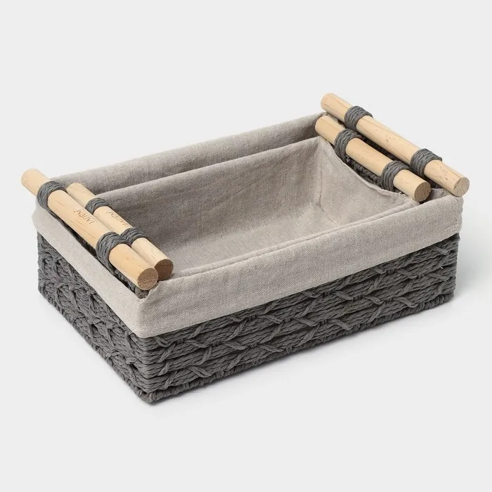 Корзины для хранения LaDо́m, 2 шт., ручное плетение, с ручками, серые — Характеристики